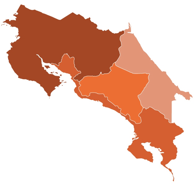 Guanacaste & le Nord : Le nord du pays regroupe le Guanacaste, l’Alajuela et l’Heredia. Composée de plaines, de volcans et d’une ouverture sur l’océan Pacifique, cette super région peut justifier à elle seule un voyage.