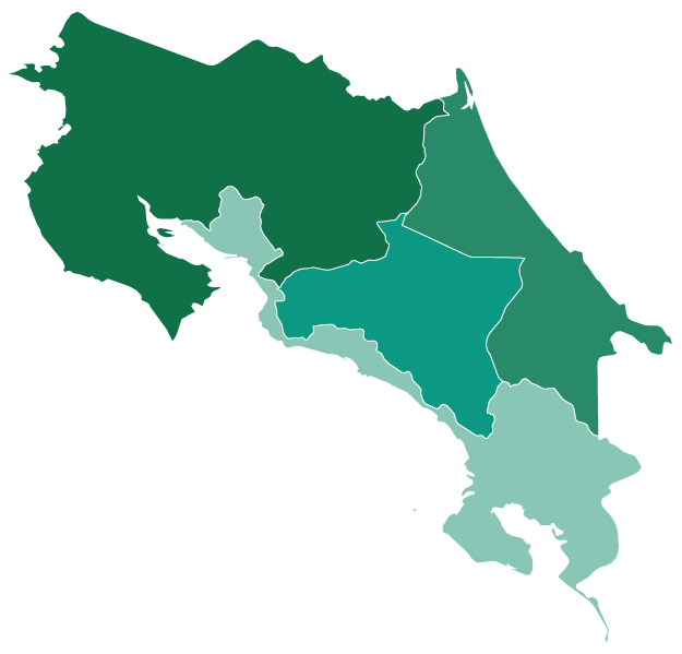 Le Costa Rica, bien qu’il soit un petit pays, regorgent de régions toutes plus différentes les unes que les autres. Nous avons donc décidé de regrouper plusieurs zones pour en faire des plus grandes qui seraient plus pertinentes pour parler de voyage. Nous pouvons distinguer quatre grandes régions.